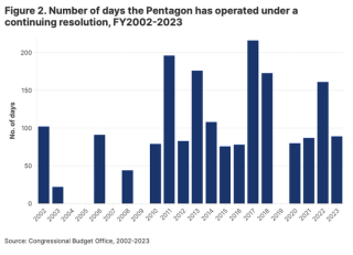 Yet, those material effects on US military readiness and modernisation have not provided sufficient incentive to grease the wheels of annual appropriations. By its own count, the Department of Defense has spent the equivalent of “nearly five years” since 2011 operating under CRs, and has only once entered a new fiscal year with a readymade appropriated budget (see Table 2). Should it eventuate, a year-long CR for FY24 – which would be a first for the Pentagon – would mean that the Department of Defence will have spent more than a third of the last fifteen years operating under fiscal constraints.