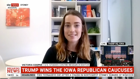 USSC Research Editor Victoria Cooper appears on Sky News to discuss the battle between Haley and DeSantis for second place after Trump's landslide win in the Iowa caucuses. Cooper says that "no one has gone on to win Iowa and New Hampshire or South Carolina."